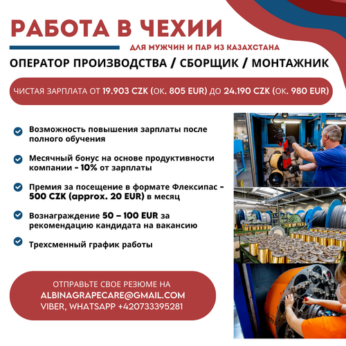 РАБОТА В ЧЕХИИ для мужчин и пар из Казахстана