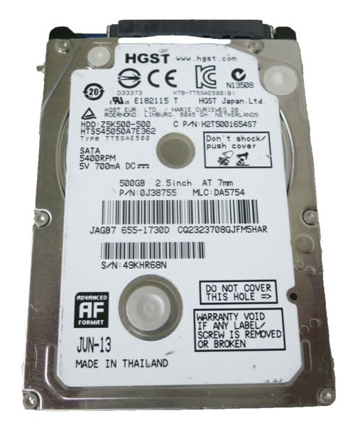 Жесткий диск 500 Гб Hitachi Travelstar Z5K500, 2,5", 5400 Об/мин, SATA II, HTS545050A7E380