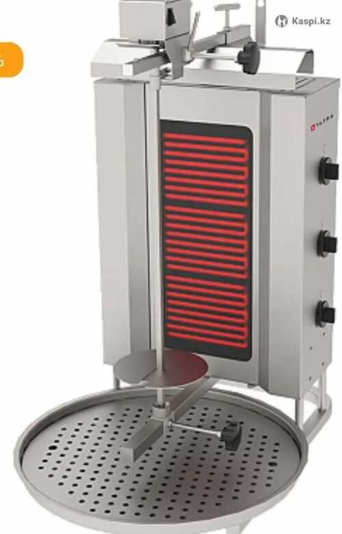 Гриль для шаурмы Tatra TDM E 3T предназначен для обжарки большого количества различных видов мяса и птицы при приготовлении начинки из рубленного мяса для шаурмы и других блюд на предприятиях общественного питания и торговли. Модель оснащена электромеханической панелью управления, верхним приводом вращения вертела и емкостью для сбора жира. Корпус выполнен из нержавеющей стали.Система индивидуального управления каждой зоной нагрева с двумя уровнями мощности (min-max)Привод обеспечивает вращение вертела в обе стороныНагревательные элементы защищены термостойким стекломВертел гриля перемещается вперед и назад для настройки аппарата в зависимости от количества мясаГабариты в упаковке: 640х770х1160 мм.700 000 тенге.Алматы. Отправка по Казахстану!