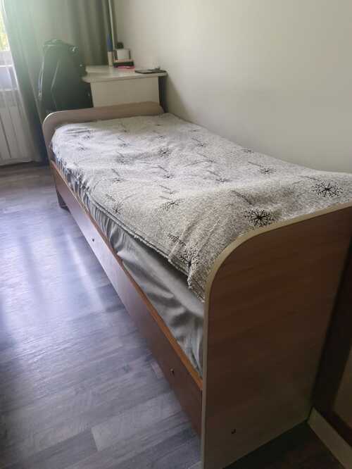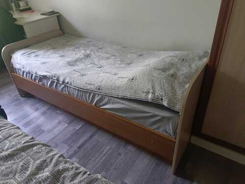 Продам кровать б/у, состояние среднее. Размер - 200*83см. Без матраса - 10000 тг, с матрасом (почти новый) - 25000 тг. Самовывоз с адреса - Наурызбай батыра, 82. Этаж 4-й. Для транспортировки можно разобрать. Но, лучше перевозить в собранном виде.