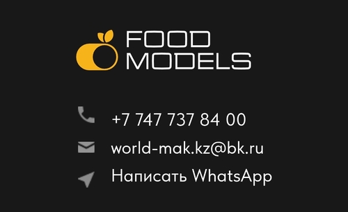 Муляжи еды (образцы продуктов питания) – это искусственные 3D копии блюд и напитков в натуральную величину. Их размещают на витринах предприятий общественного питания для наглядной демонстрации продаваемой продукции. Муляжи еды являются отличным инструментом рекламы, который эффективно решает 6 важных задач маркетинга, больше информации на сайте food-models.kz