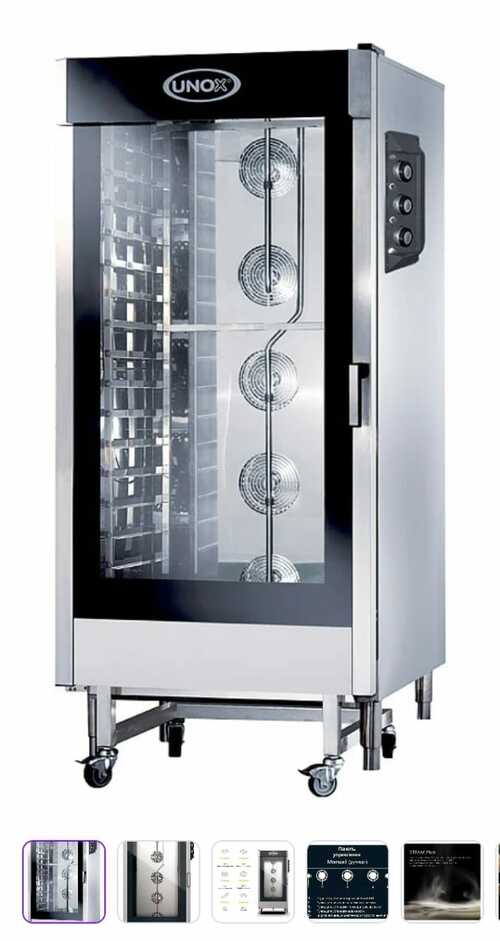 Печь конвекционная UNOX XB 1083 серии BakerLux предназначена для приготовления различных блюд, выпечки хлебобулочных и кондитерских изделий на предприятиях общественного питания и торговли, в пекарнях и кондитерских. Модель оснащена механическим управлением и подсветкой посредством галогеновых ламп и L-образными направляющими. Съемное внутреннее стекло облегчают чистку и обеспечивают максимальную гигиену. Камера с закругленными углами выполнена из нержавеющей стали AISI 304, направляющие - из нержавеющей стали, дверные петли - из высокопрочного самосмазывающегося технополимера, дверной замок - из углеродного волокна.Оборудование должно быть подключено к сети водоснабжения (вентиль 3/4″).В комплект поставки входят 4 пластиковых держателя, набор для подключения к водопроводной сети (шланг подачи воды, механический фильтр и невозвратный клапан 3/4) и набор «Starter Kit» (8 саморезов, гаечный ключ, конический колпачок для сливного отверстия и наклейка). Листы для выпечки в комплект поставки не входят и приобретаются отдельно.Рекомендуется дополнительно приобрести водоумягчитель и фильтр-систему для очистки и смягчения воды.Режимы выпечки:Конвекция: от 30 до 260 °CКонвекция + пар: от 48 до 260 °CПредварительный разогрев (максимальная температура): 260 °СРаспределение воздуха в камере:Технология AIR.Plus:Вентиляторы с реверсивным движением2 скорости воздушных потоковУправление климатом в камере:Технология DRY.Plus: быстрое удаление влажности из камерыТехнология STEAM.Plus: ручная подача влажности в камеруТеплоизоляция и безопасность:Технология Protek.SAFE™: максимальная эффективность и безопасность при работе (внешняя поверхность печи и стекла двери не нагреваются)Атмосферные горелки:Технология Spido.GAS™: теплообменник с прямыми трубами высокой отдачи для симметричного распределения жара и возможностью быстрой заменыЗапатентованная дверь:Блокировка произвольного открытия дверцы в позициях 60°-120°-180°Изменение направления открытия двериВспомогательные функции:99 программ в памяти, каждая по 3 шага + предварительный нагревВизуализация остаточного времени выпечкиНепрерывная работа печи "INF"Технические детали:Панель управления ManualОграничитель температуры для безопасностиНебольшой вес - надежная конструкция, благодаря применению инновационных материаловДополнительные характеристики:Регулировка времени приготовления: от 0 до 120 минутРегулировка подачи пара: от 0 до 100%Максимальная температура подключаемой воды: 30 °CМаксимальная электропроводность подключаемой воды: 150 мкС/смМаксимальная жесткость подключаемой воды: 7 °fДавление подключаемой воды: от 150 до 600 кПаРасстояние при установке:Относительно стен, минимум: 50 ммОтносительно другого оборудования:Сбоку, минимум: 45 ммСзади, минимум: 70 ммТемпература окружающей среды: от 5 до 35 °CУстановка напольная4 500 000 тенгеАлматы Отправка по Казахстану