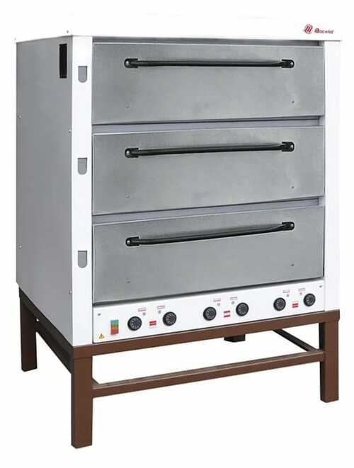 Хлебопекарная печь Восход ХПЭ-500(на заказ)используется в пекарнях, кондитерских, на предприятиях пищевой промышленности и общественного питания для выпечки широкого ассортимента хлебобулочных и кондитерских изделий, а также для приготовления (термообработки) мясных, рыбных, овощных и других блюд. Высокая камера выпекает формовой хлеб, исключая подгорание верхней корки от контакта с верхними ТЭНами. Крышка пекарной камеры выполнена из оцинкованной стали.Особенности:Система пароувлажнения в каждой камереИндивидуальная установка и автоматическое поддержание температуры нижних и верхних групп ТЭНов (температуру пода и свода) каждой камерыЗвуковой сигнал по окончании заданного времениРасположение органов управления относительно пекарных камер: снизуОткрытПодключение 380 ВКоличество камер (подов) 3Вместимость (емкостей) 6Количество уровней в одной камере 1Размеры камеры 965х760х250 ммОбъем камеры 0.18 м³Формат емкостей хлебная форма №7, противни 700x460 ммТемпературный режим от 180 до 280 °СМощность 19.2 кВтШирина 1160 ммГлубина 1050 ммВысота 1625 ммВес (без упаковки) 361 кгСтрана производства Россия1 000 000 тенге Алматы Отправка по Казахстану
